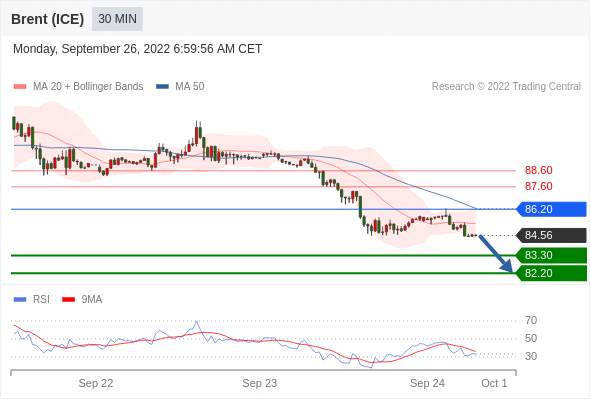 布伦特原油 (ICE)? (Z2)? 当日内: 存在压力。