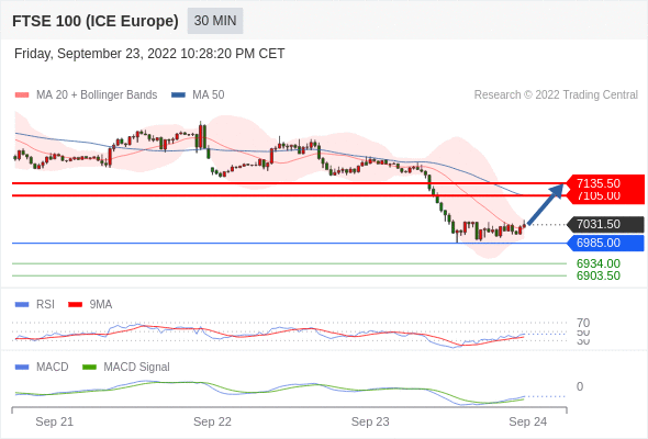 如跌破 6985 ,英国富时100指数期货 目标方向定在 6934 和 6903.50 。