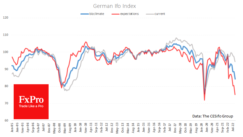 FxPro高级分析师Alex?Kuptsikevich指出:像往常一样,前瞻性市场更关注预期成分的发展,9月份预期成分从80.5降至75.2,创下历史第二低。 然而,乐观主义者可能会注意到,目前的情况并没有恶化得太厉害。 9月份的当前状况指数从97.5降至94.5,低于2005年以来的历史平均水平96.7。