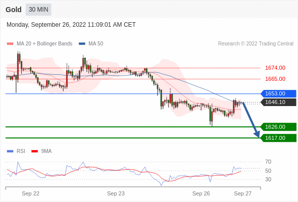 在 1653.00 之下,看跌,目标价位为 1626.00 ,然后为 1617.00 。