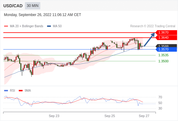 在 1.3570 之上,看涨,目标价位为 1.3640 ,然后为 1.3670 。