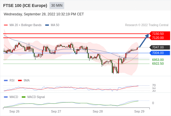 英国富时100指数期货 当日内: 看涨,当 7004.00 为支撑位。