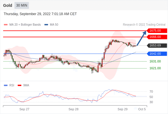 在 1642.00 之上,看涨,目标价位为 1666.00 ,然后为 1675.00 。