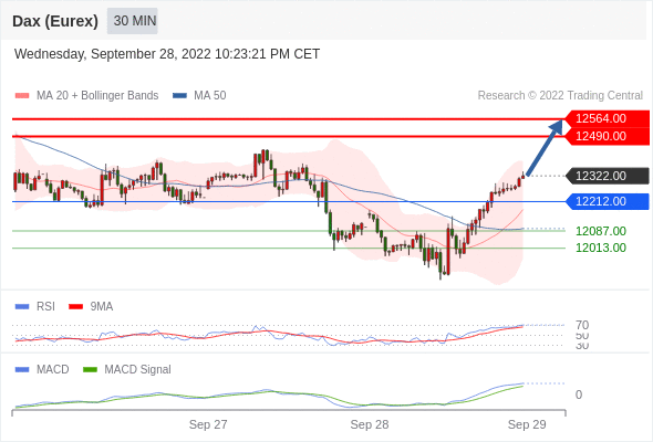 如跌破 12212 ,德国DAX指数期货 (Eurex) 目标方向定在 12087 和 12013 。
