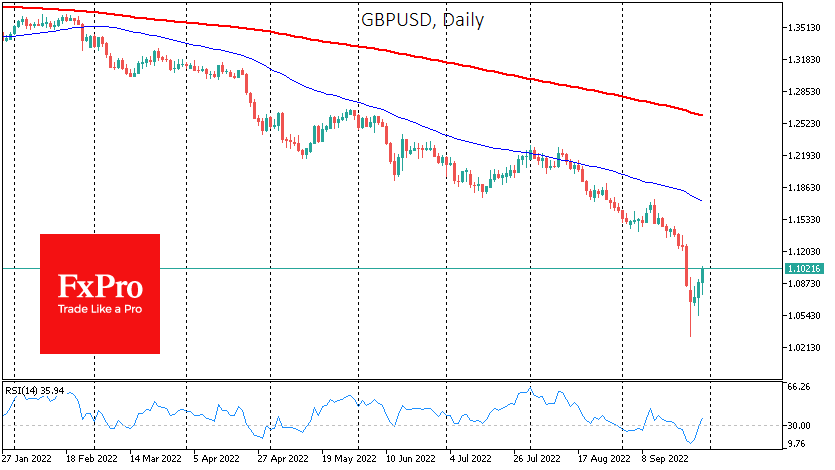 GBPUSD连续第三天上涨,达到1.0960,高于周五收盘水平,比周一创下的历史低点高出6%以上。