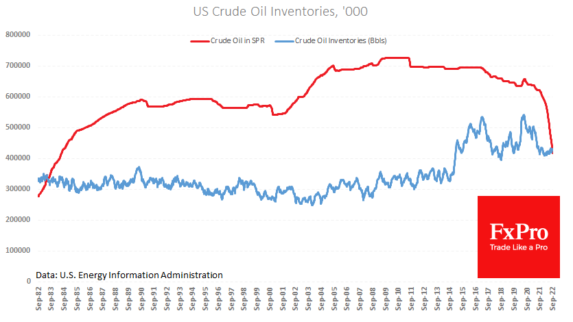 然而,除了欧佩克+,美国也采取了看涨立场,宣布没有进一步出售战略储备石油的意图。 官员们对战略储备39年来首次低于商业储备水平感到不安。