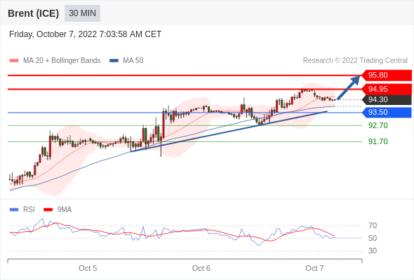 布伦特原油 (ICE)? (Z2)? 当日内: 在93.50之上,看涨。