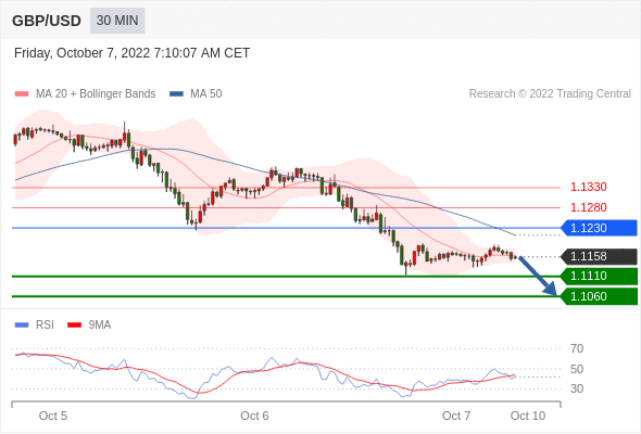 在 1.1230 之下,看跌,目标价位为 1.1110 ,然后为 1.1060 。