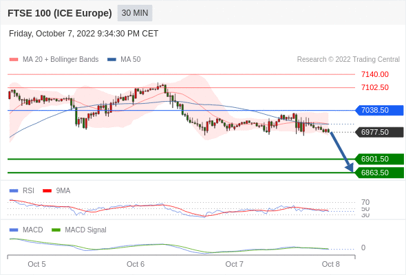 英国富时100指数期货 当日内: 看跌,在 7038.50 之下。