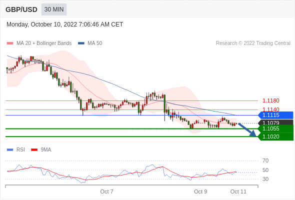 在 1.1115 之下,看跌,目标价位为 1.1055 ,然后为 1.1020 。