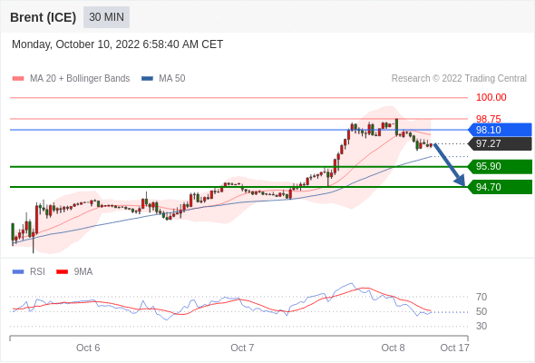 在 98.10 之下,看跌,目标价位为 95.90 ,然后为 94.70 。