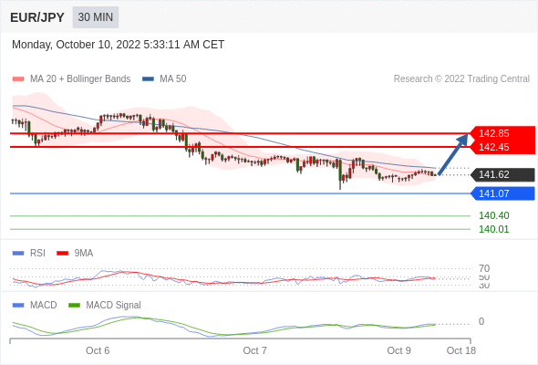 欧元/日元 当日内: 有上涨的可能,目标价位定在 142.85 。