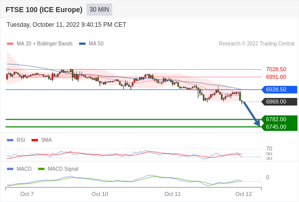 英国富时100指数期货 当日内: 看跌,在 6928.50 之下。