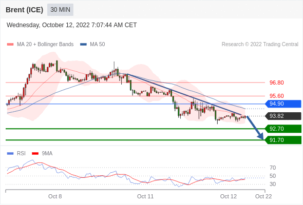 布伦特原油 (ICE)? (Z2)? 当日内: 被下降趋势线拖累。