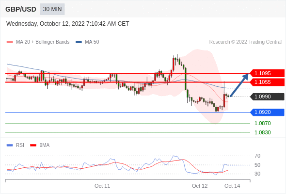 在 1.0920 之上,看涨,目标价位为 1.1055 ,然后为 1.1095 。