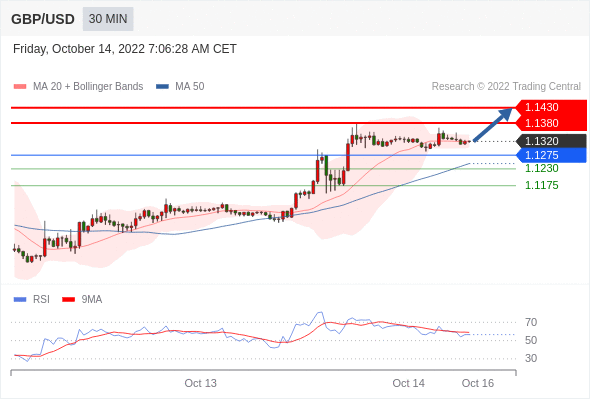 在 1.1275 之上,看涨,目标价位为 1.1380 ,然后为 1.1430 。
