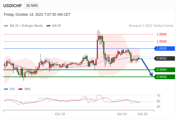 在 1.0020 之下,看跌,目标价位为 0.9960 ,然后为 0.9940 。