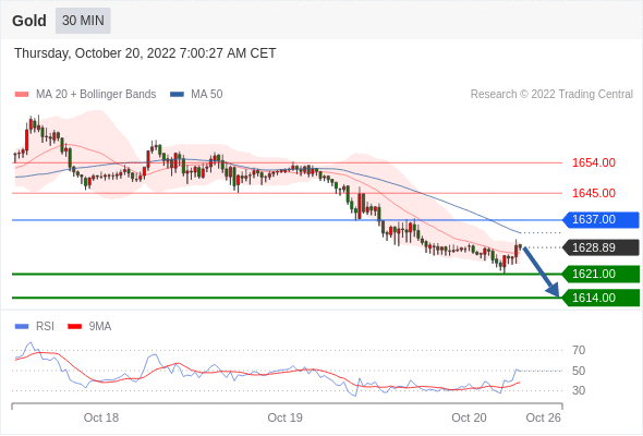 在 1637.00 之下,看跌,目标价位为 1621.00 ,然后为 1614.00 。