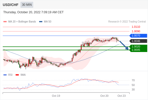 在 1.0070 之下,看跌,目标价位为 1.0020 ,然后为 1.0005 。