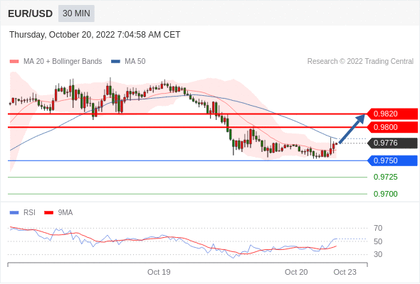 在 0.9750 之上,看涨,目标价位为 0.9800 ,然后为 0.9820 。