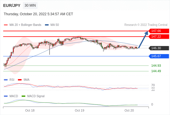 欧元/日元 当日内: 有上涨的可能,目标价位定在 147.66 。