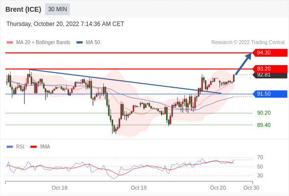 在 91.50 之上,看涨,目标价位为 93.20 ,然后为 94.30 。
