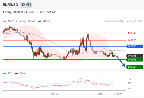 在 0.9800 之下,看跌,目标价位为 0.9755 ,然后为 0.9730 。
