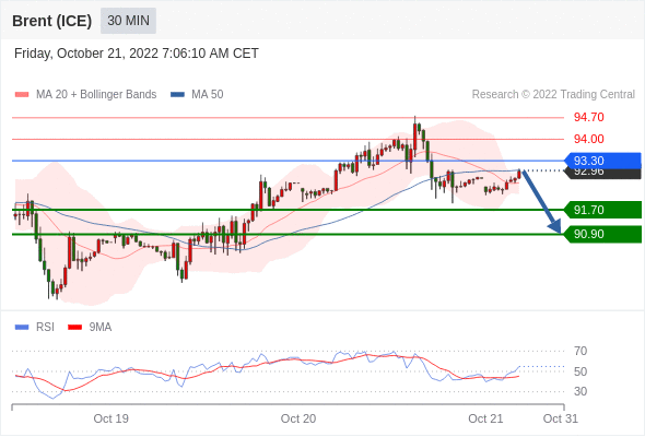 布伦特原油 (ICE)? (Z2)? 当日内: 短期关键阻力位在93.30。