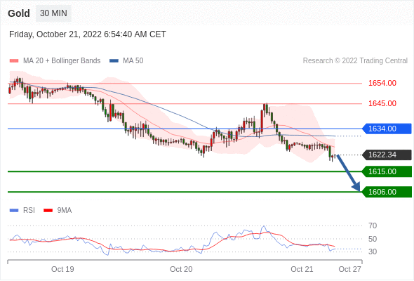 在 1634.00 之下,看跌,目标价位为 1615.00 ,然后为 1608.00 。