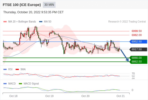 英国富时100指数期货 当日内: 看跌,在 6952.50 之下。