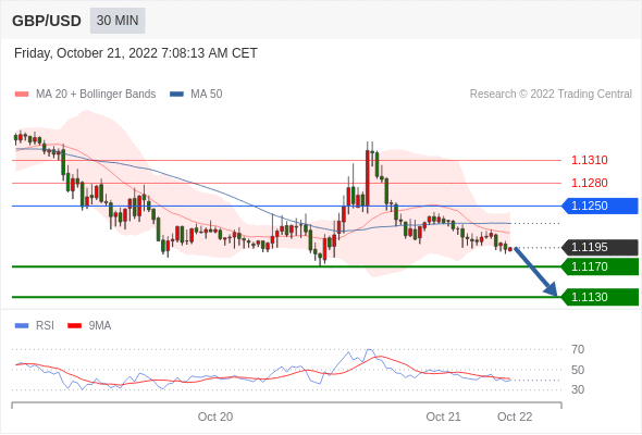 在 1.1250 之下,看跌,目标价位为 1.1170 ,然后为 1.1130 。