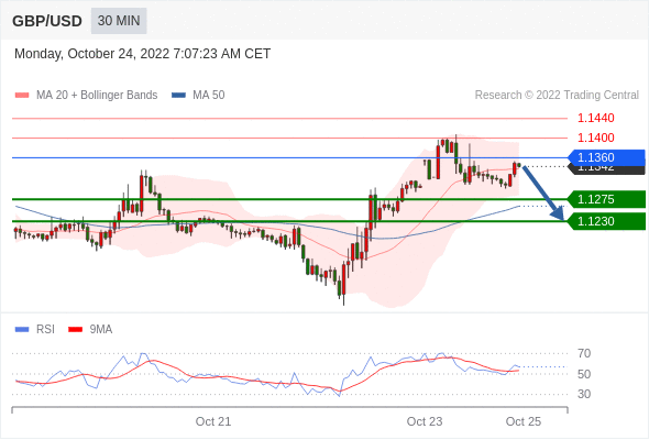 在 1.1360 之下,看跌,目标价位为 1.1275 ,然后为 1.1230 。