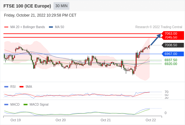 英国富时100指数期货 当日内: 看涨,当 6967.00 为支撑位。