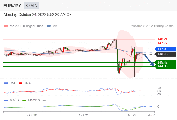 欧元/日元 当日内: 在进一步下跌之前,反弹至 147.03 附近。