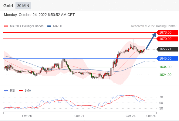 在 1645.00 之上,看涨,目标价位为 1670.00 ,然后为 1678.00 。