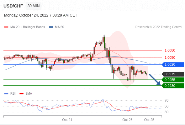 在 1.0020 之下,看跌,目标价位为 0.9955 ,然后为 0.9930 。