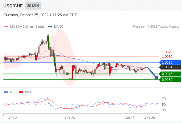 在 1.0025 之下,看跌,目标价位为 0.9975 ,然后为 0.9950 。