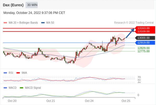 德国DAX指数期货 (Eurex)? 当日内: 看涨,当 12919.00 为支撑位,目标定在13163.00。