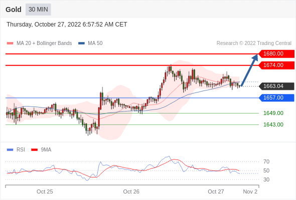 在 1657.00 之上,看涨,目标价位为 1674.00 ,然后为 1680.00 。