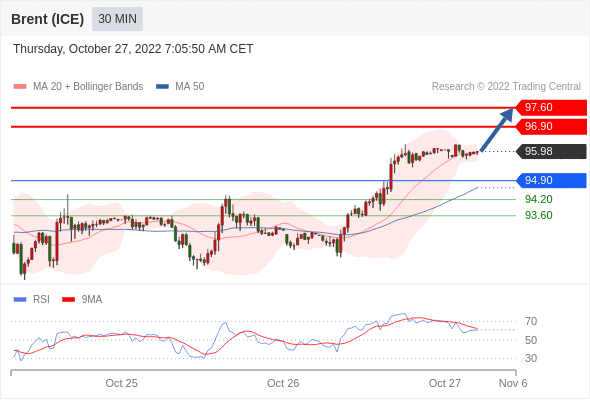 在 94.90 之上,看涨,目标价位为 96.90 ,然后为 97.60 。