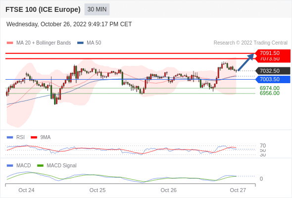 RSI技术指标超过50。 MACD技术指标呈现看多状态并 处在其信号线的上方。 此外,价位处在其20个时期及50个时期移动平均线上方 ( 当前是 7018.35 和 7014.15 )。