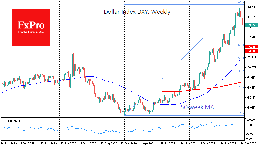 鉴于从2021年1月至5月的“双底”到2022年9月的高点的反弹总振幅,回调至104-105区域是可能的。 目标区间的下端是2020年3月美元飙升的高点。 作为长期趋势指标的200日移动平均线拉入同一区域。 上界为美元自2021年初以来上涨61.8%水平的回撤区域。