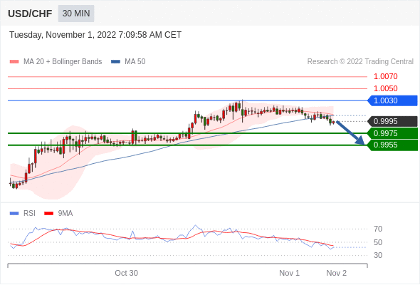 在 1.0030 之下,看跌,目标价位为 0.9975 ,然后为 0.9955 。
