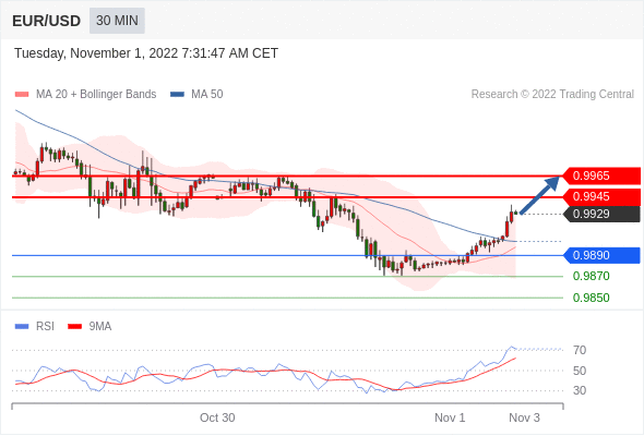 在 0.9890 之上,看涨,目标价位为 0.9945 ,然后为 0.9965 。