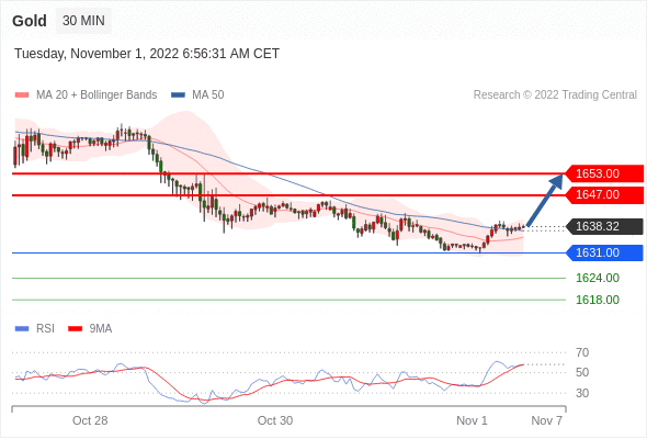 在 1631.00 之上,看涨,目标价位为 1647.00 ,然后为 1653.00 。