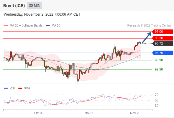 在 94.70 之上,看涨,目标价位为 96.30 ,然后为 97.00 。