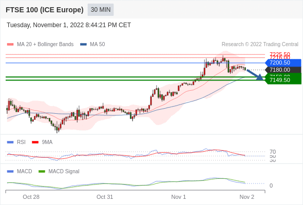 英国富时100指数期货 当日内: 逐渐下跌,当 7200.50 阻碍上行,则 7149.50 为目标位。