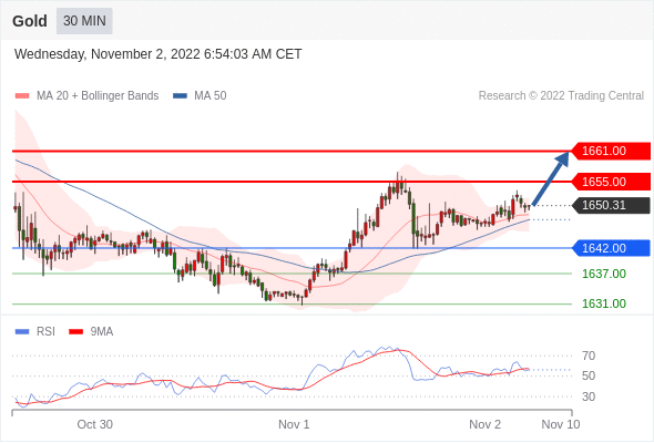 在 1642.00 之上,看涨,目标价位为 1655.00 ,然后为 1661.00 。