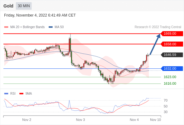 在 1632.00 之上,看涨,目标价位为 1658.00 ,然后为 1669.00 。