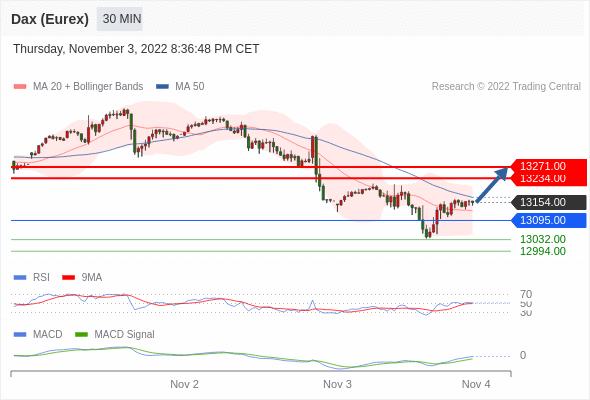 如跌破 13095 ,德国DAX指数期货 (Eurex) 目标方向定在 13032 和 12994 。
